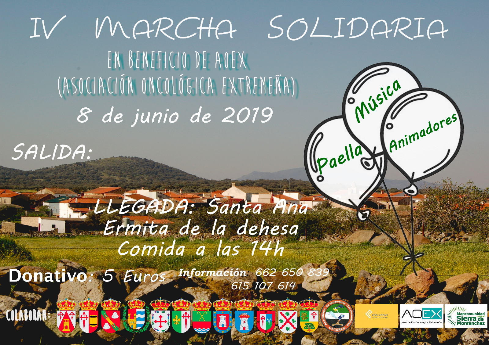 El Ayuntamiento de Ruanes colabora con la IV marcha solidaria, que se celebrara el 8 de junio de 2019, en beneficio de AOEX (Asociación Oncológica Extremeña). Para más información de la salida llamar al ayuntamiento.